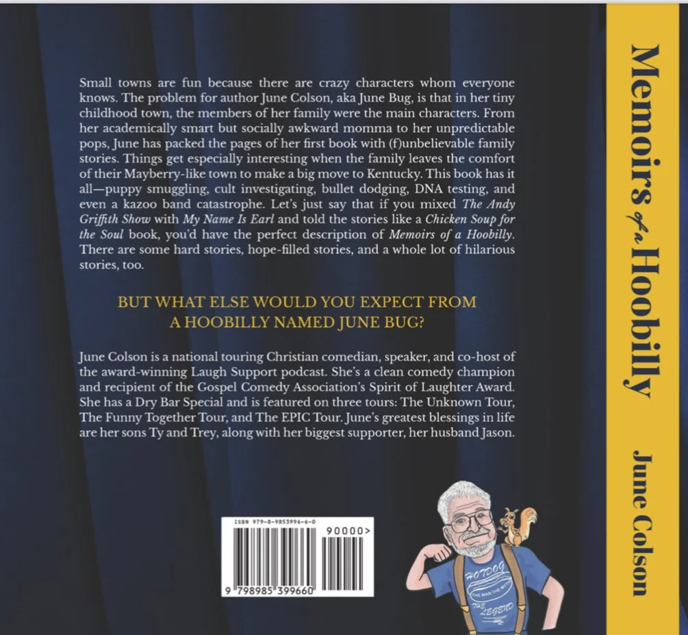 Smalls towns are fun because there are crazy characters whom everyone knows. The problem for author June Colson, aka June Bug, is that in her tiny childhood town, her family members were the main characters. From her academically intelligent but socially awkward momma to her unpredictable pops, June has filled the pages of her first book with some (fun)believable family stories. Things get especially interesting when the family leaves the comfort of their Mayberry-like town to make a big move to the state of Kentucky. This book has it all: puppy smuggling, cult investigating, bullet dodging, DNA testing, and a kazoo band catastrophe. Let’s just say that if you combined The Andy Griffith Show with My Name is Earl and told the stories like a Chicken Soup book, you’d have the perfect description of Memiors of a Hoobilly. There’s some hard stories, hope filled stories, and a whole lot of hilarious stories too. But what else would you expect from a Hoobilly named June Bug!t what else would you expect from a Hoobilly named June Bug!